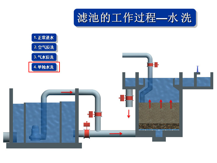 反洗水泵:為濾池濾料的反沖洗和氮氣釋放系統(tǒng)提供反沖洗水。